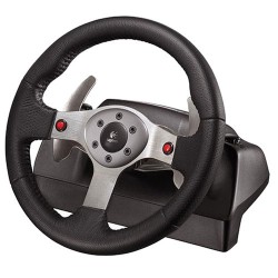 Put on your head gear and slide your fingers over premium materials and hand-crafted components. Stand before a team of racing fanatics dedicated to providing the most realistic driving experience possible. With the G25 Racing Wheel, Logitech is taking sim racing controls to the next level, and we’d like you to come along for the ride. The G25’s unique dual-motor force feedback transmission delivers powerful, high-fidelity force effects to the hand-stitched leather wheel, so you can feel under-and oversteer before you’re on the barrier. Place your car in gear with the leather shift knob and adjust the speed you want with the sequential shift mode. Slam on the brakes without worrying about steering off course. With stainless steel gas, brake and clutch pedals, you’ll always stay on track. So, sit down, turn off the lights, and crank up the sound. You’re not playing games anymore! With the G25, you’re racing.Amazon.com Product Description Real metal. Real leather. Real racing. Premium materials. Hand-crafted components. A team of racing fanatics dedicated to providing the most realistic driving experience possible. With the G25 Racing Wheel, Logitech is taking sim racing controls to the next level, and we’d like you to come along for the ride. The G25’s unique dual-motor force feedback transmission delivers powerful, high-fidelity force effects to the hand-stitched leather wheel, so you can feel under-and oversteer before you’re on the barrier.
