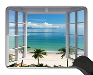 Mouse Pad Sea Wonderful View Ocean Sunshine Splendor Paradise Palm with White Wooden Windows Customized Non-Slip Rubber Mousepad Gaming Mouse Pad