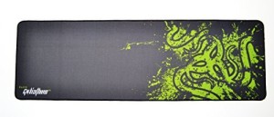Razer Goliathus XL Extended Gaming Mouse/Keyboard Pad Size: 36 Inches Long x 11.5″ Wide x 3mm (.12″) Thick Razer Goliathus mouse pads feature a very durable cloth-like surface with a double stitched edge, which eliminates the issues with fraying or peeling as is commonly associated with traditional mouse pads. At 3 feet long, this pad is long enough to accomodate your keyboard and your mouse, with plenty of room for mouse movement and the new sleek design will surely be a focal point of attention on your desk. This pad also features a rubber non-slip bottom, so you can be sure that it will stay where you put it.