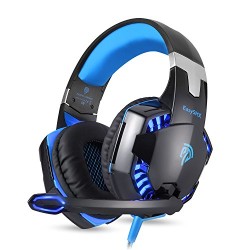 EasySMX G2000 Over Ear Stereo Gaming Headset Wired Headphone with Adjustable Headband and Microphone Mic USB and 3.5mm Audio Connector LED Indicator Noise Isolation/In-line Volume Control for PC Gamer