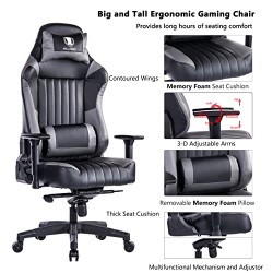 KILLABEE Big and Tall 400lb Memory Foam Gaming Chair – Adjustable Tilt, Back Angle and 3D Arms Ergonomic High-Back Leather Racing Executive Computer Desk Office Chair, Grey