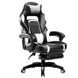 Merax Racing Office Desk Chair Gaming Ergonomic Chair with Footrest and Adjustable Armrests Home Office Computer Computer Chair (Green) (White)