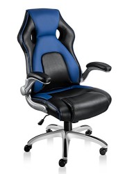 • NKV High Back Gaming Chair Racing Style Office Chair Ergonomic Computer Video Game Chair Heavy Duty PC Adjustable Swivel Desk Chair Bonded Leather (Black/Blue)