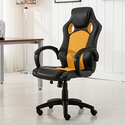 • Belleze Racing Style High Back Chair PU Leather Ergonomic Swivel Seat, Black/Yellow