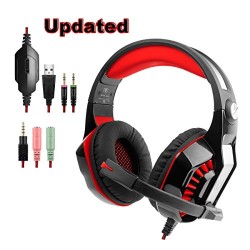• [Updated] Gaming Headset, Aottom Gaming Headphone With 3.5mm Stereo Over-ear Headphone LED Headphone with Microphone and Y Splitter for PS4 Xbox One PC Laptop Smartphone Tablet – Black+Red