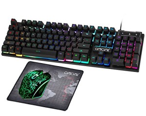 • Gaming LED Wired Keyboard and Mouse Combo with Emitting Character 3200DPI Usb Mouse Multimedia Keys Rainbow Backlight Mechanical Feeling for PC Resberry Pi Mac Tob box with Mousepad,910b