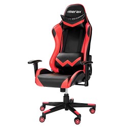 • Merax Racing Style Gaming Chair Ergonomic Design with Headrest and Lumbar Support PU Leather Chair (Red)