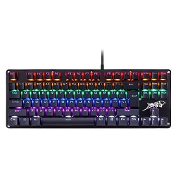 • LINGBAO JIGUANSHI Mechanical Keyboard 87 Keys Computer Wired USB Backlit Metal Panels Gaming Keyboard (Mixed Light, Black Bezel, Black Cap, Blue Switches)