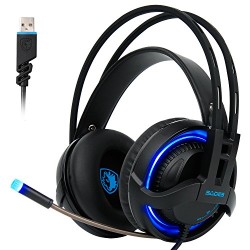 • [2017 SADES R2 Gaming Headset], Gaming Headsets Headphones 7.1 Channel Virtual USB Surround Stereo Wired PC Over-Ear Stereo Bass With Mic Volume Control Noise Canceling LED For PC Laptop Mac Mobile