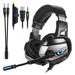 • ONIKUMA Gaming Headset for PS4 ,PC,Xbox One Controller,Noise Cancelling Bass Over Ear Stereo Headphones with Mic,Bass Surround,LED Light, Soft Memory Earmuffs for Laptop Mac Nintendo Switch Games