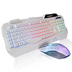 • LETTON K1 LED Backlit USB Wired Gaming Keyboard and Mouse – White